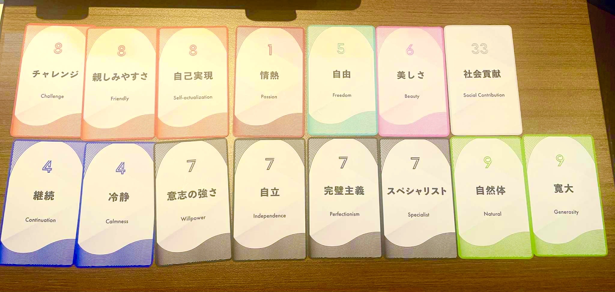 自己探索ワークは色・数字・キーワードが書かれているパーソナルスキルカードを使って行います。