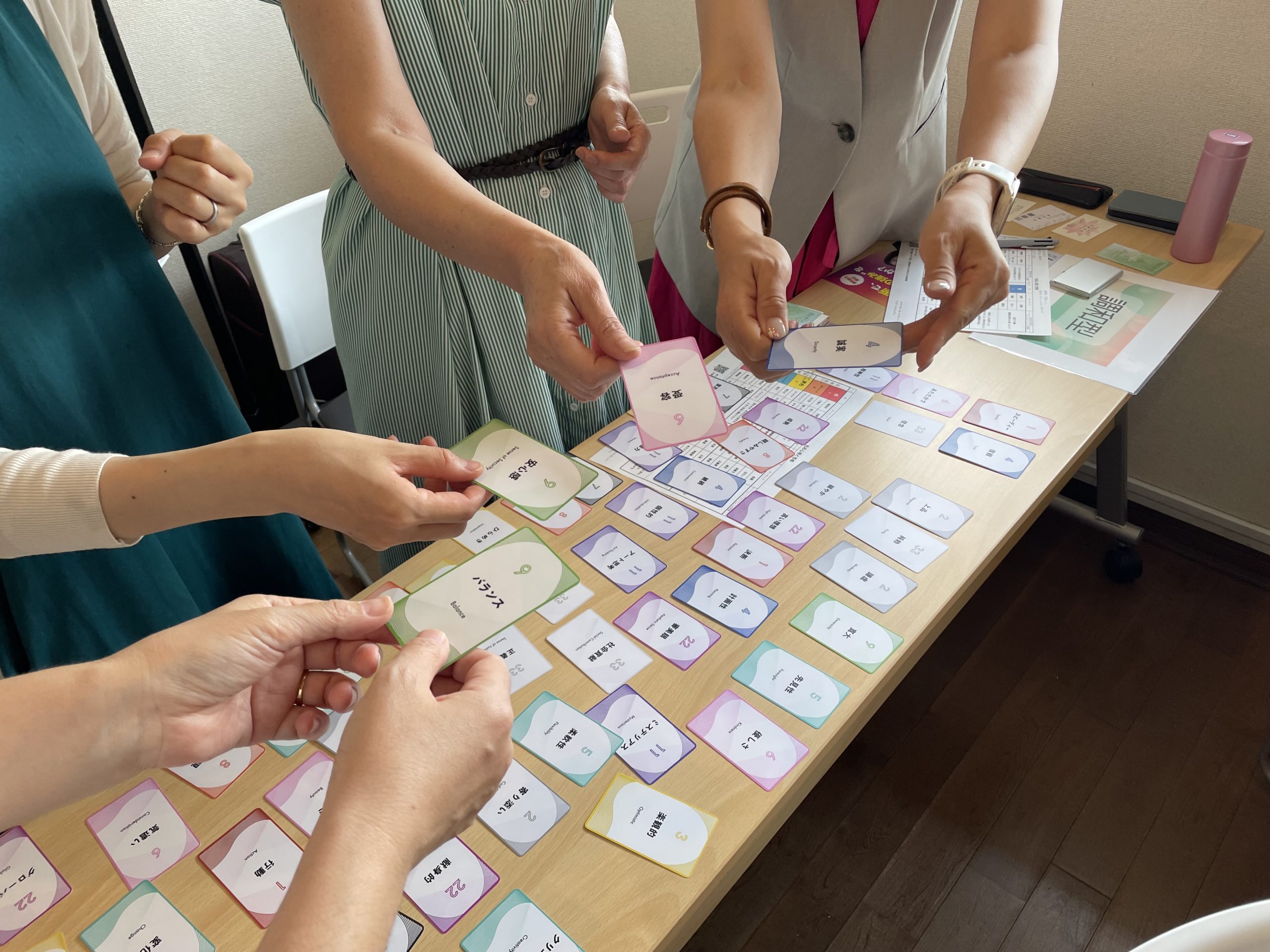 パーソナルスキルカードは、色彩心理をベースとした色と数字と言葉が書かれたカードです。研修や講座では参加者の考えをアウトプットしていただいたり、アイスブレーク、ブレインストーミングに活用しています。